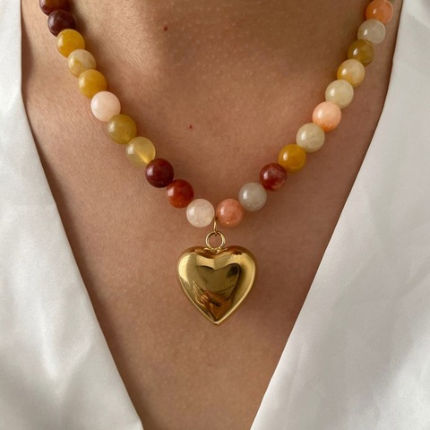 Vendita calda resistente all'acqua in acciaio inox pietra naturale grande cuore collana pendente placcato oro 18K collare girocollo