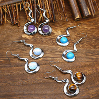สินค้ามาใหม่เครื่องประดับคริสตัลต่างหูหินธรรมชาติต่างหูส่วนบุคคลรูปตาเสือต่างหูหินเทอร์ควอยซ์